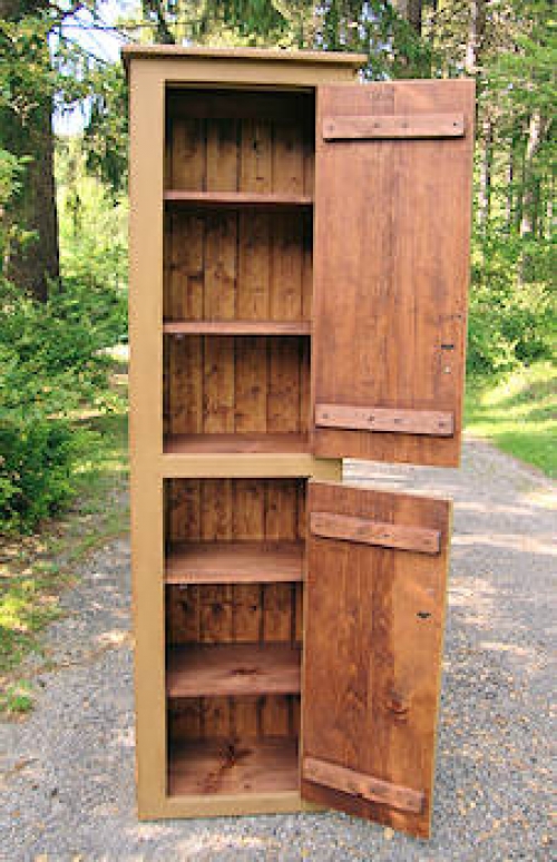 Somerset Pantry This two door pantry is great for any room in your house! It would work especially great in your kitchen as a pantry! This piece measures 74" high, 20" wide & 12" deep. The pantry shown has been finished in English Chestnut Stain and painted Valley Forge Mustard. We added butterfly hinges to this one but H hinges would look great also!