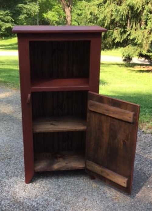 Laurel Mountain Pantry Our Laurel Mountain Pantry measures 48" high, 23" wide & 12" deep. The color shown is Salem Brick with dark walnut stain.